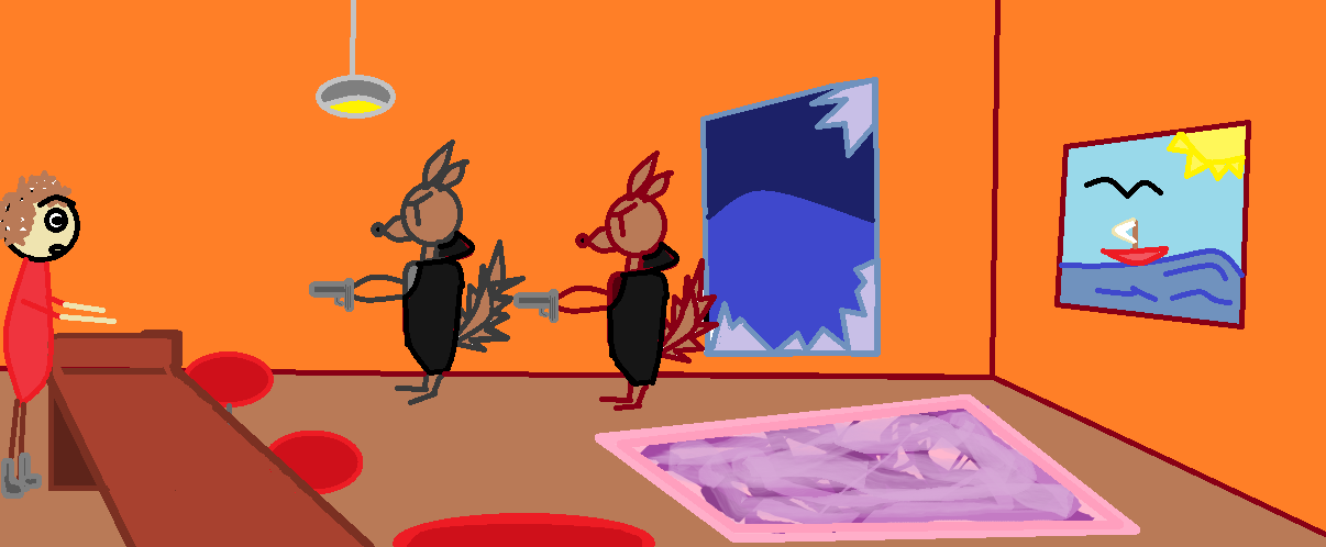 Akkor be tört a söröző ablaka és két fegyveres mókus akarom mondani muksó, kezdet el kiabálni, hogy: